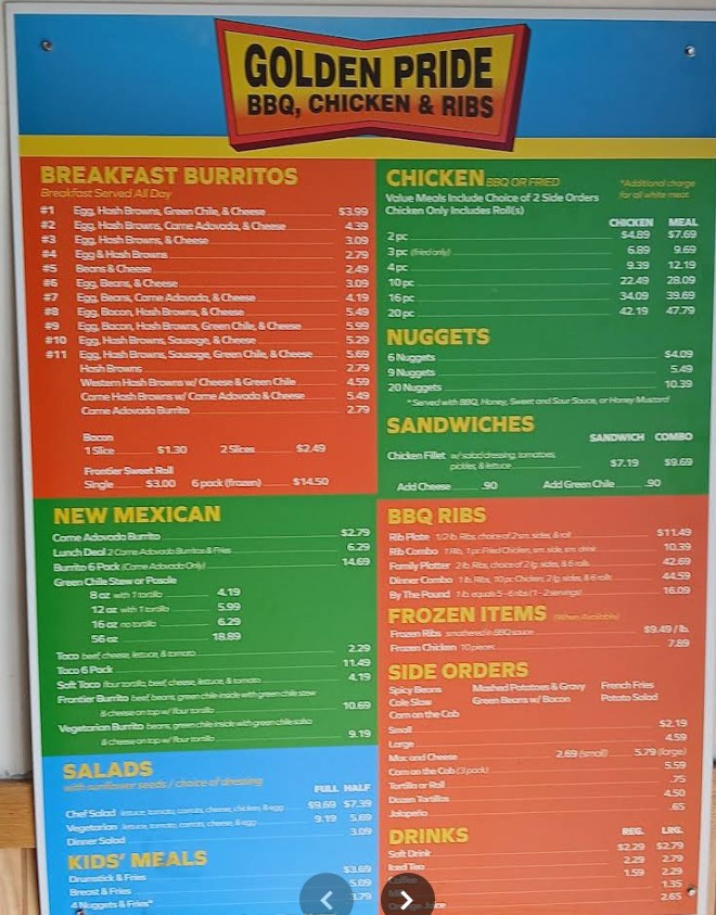Welcome to Golden Pride Restaurant, where we serve the finest BBQ, chicken, ribs, and breakfast burritos in Albuquerque. Whether you’re craving a hearty breakfast or a satisfying BBQ meal, our restaurant offers a variety of mouthwatering dishes that are sure to please. Our friendly atmosphere and all-day menu make it the perfect place to enjoy great food with friends and family. Stop by or order from our drive-through or delivery service today!
